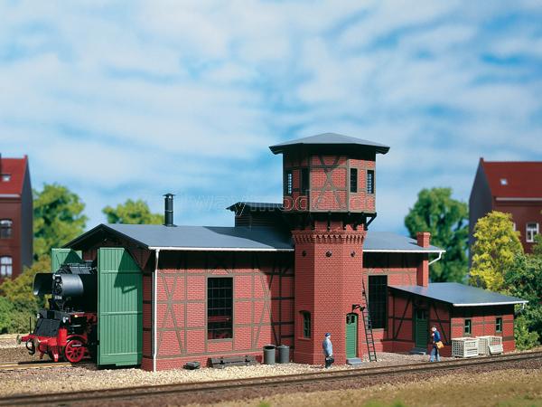 Локомотивное депо с водонапорной башней 245x120x127 мм.