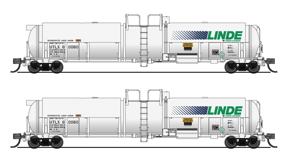 Набор из двух четырехосных железнодорожных цистерн повышенной емкости для транспортировки и хранения жидких криогенных продуктов: кислорода, азота или аргона. Принадлежность Linde