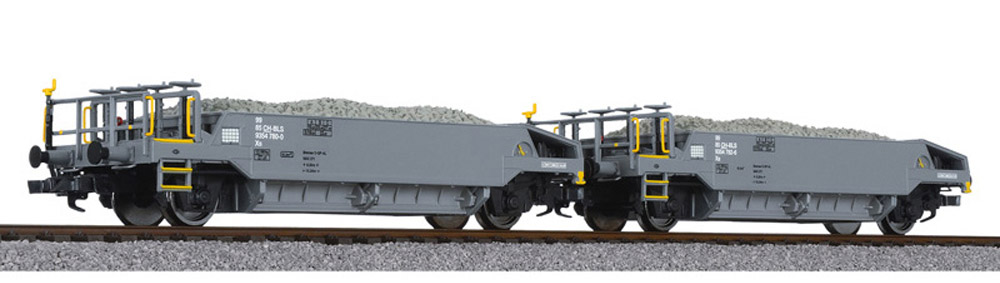 Набор из двух вагонов для перевозки гравия, с гравием. Принадлежность BLS. Эпоха VI