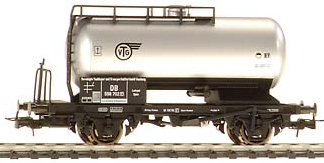 Двухосная цистерна для использования, помимо европейских, на железных дорогах Великобритании, для чего вагон был сделан более узким - для соответствия английским стандартам. Принадлежность VTG DB. Эпоха III