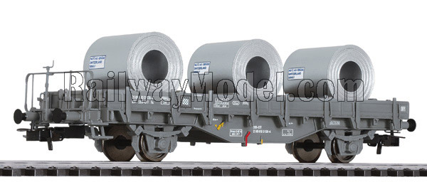 Платформа с грузом стального проката в рулонах. Принадлежность SBB, Швейцария. Эпоха IV