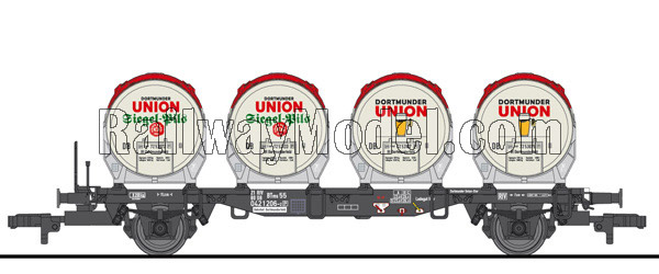 Платформа для перевозки контейнеров, тип BT55, с четыремя емкостями Ddikr 624. Принадлежность DB, Германия. Эпоха IV