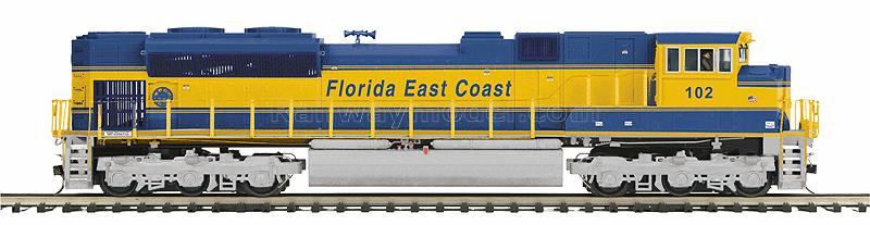 Тепловоз EMD SD70M-2 аналоговая версия. Имеется разъем под установку стандартного DCC декодера. Принадлежность Florida East Coast #102. В кабине - фигурки машиниста и помощника, свет в прожекторах и номерных таблицах, освещение в кабине. Минимально рекомендуемый радиус 18" (457 мм). Может использоваться как на рельсах высотой 2.1 так и 2.5 мм.