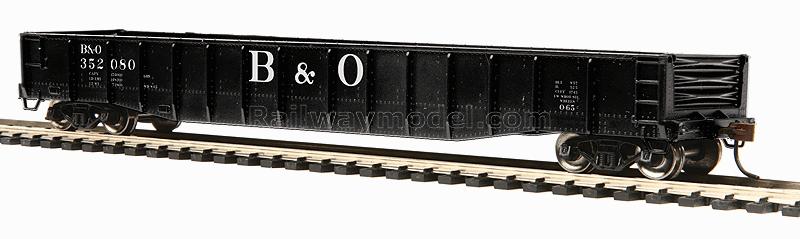 70-тонная гондола для обслуживания различных металлургических и машиностроительных заводов, для перевозки длинномерных, крупнотоннажных грузов и материалов. Принадлежность Baltimore & Ohio #352080 (black, Large B&O)