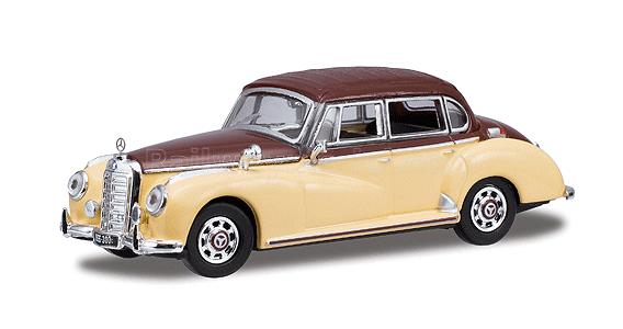 Серия Европейские автомобили, 1955г., Mercedes Benz 300C Limousine, золотой, кофейный. Модель великолепного качества с интерьером, хромовыми деталями и отлично выполненными мелкими надписями и т.п. Поставляется в прозрачном пластиковом боксе.