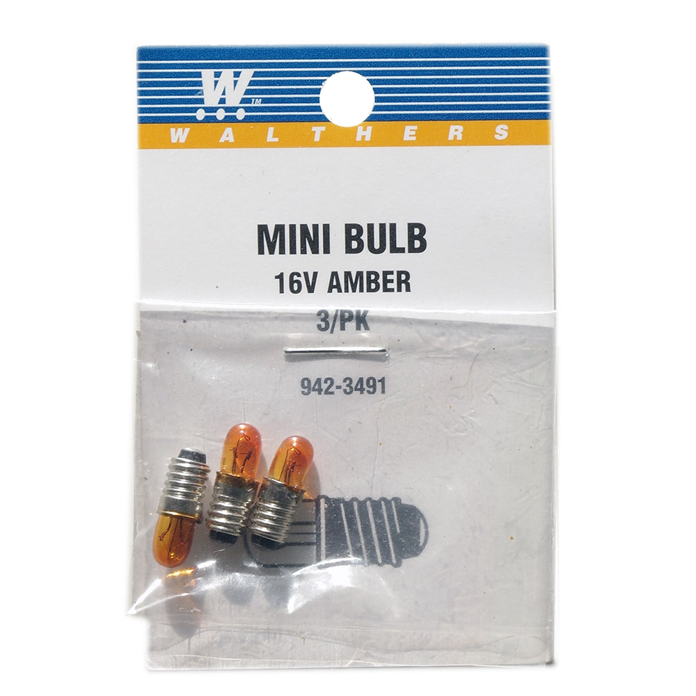 Лампы 16В, 100 mA (цоколь E5.5). В упаковке 3 шт. Производство WALTHERS, артикул по каталогу WALTHERS 942-3491. Можно использовать для цифрового управления. Подходят для держателей BRAWA 3400 и т.п. Новый набор, в упаковке.